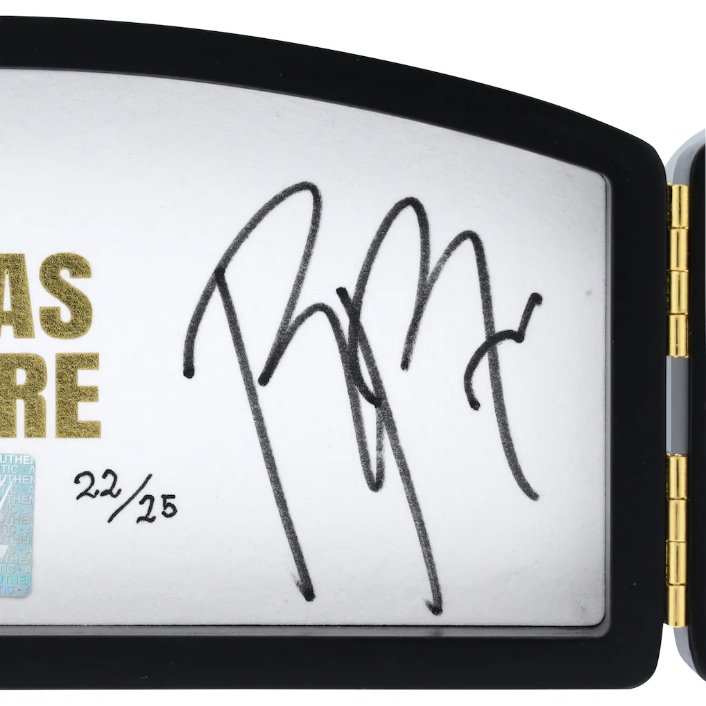 Elevate your WWE collection with this Roman Reigns & Cody Rhodes WWE Autographed 2024 Bad Blood Mini Title. This limited-edition mini belt, autographed by two of the greatest WWE Superstars in recent memory, is a rare treasure for any wrestling aficionado. Authenticated with FanSecure technology, this collectible ensures that you’re acquiring a genuine piece of WWE history.
